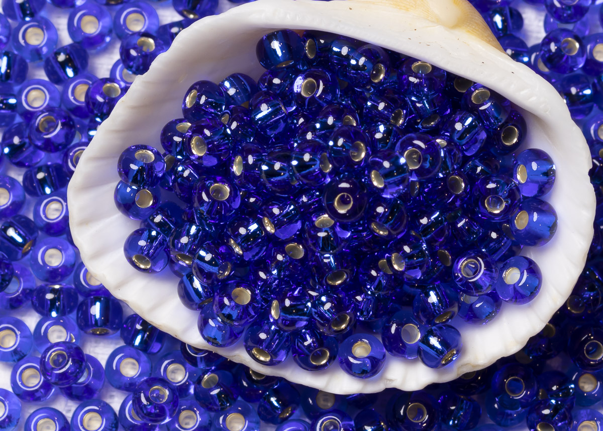 Бисер Чехия круглый 06/0 50 г 37080 прозрачный синий с серебряным прокрасом