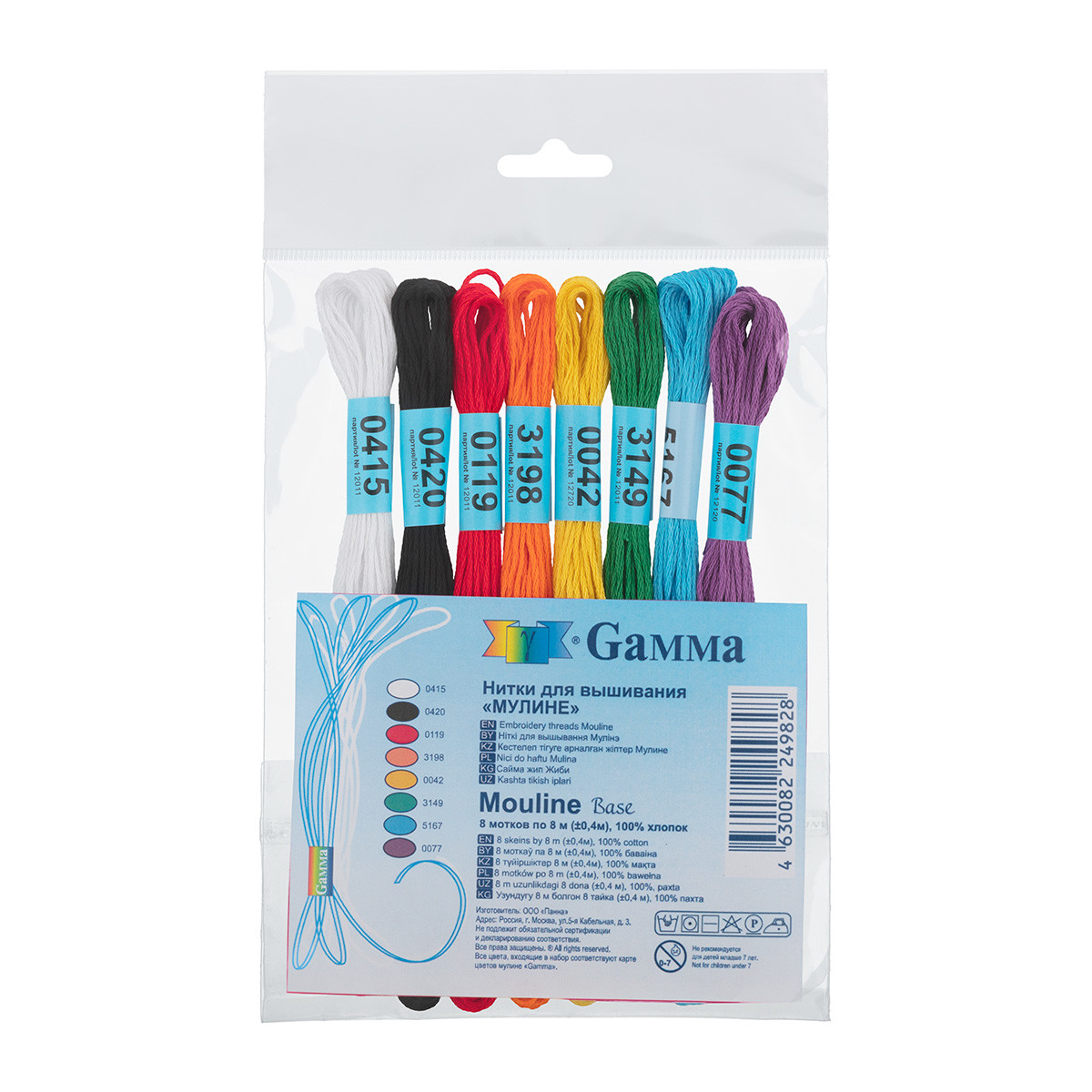 Нитки мулине " Gamma" изготавливаются из длинноволокнистого египетского хлопка двойной мерсеризации, на европейском и японском оборудовании, с использованием качественных европейских красителей. Нитки гладкие, ровные, имеют стойкую окраску, не уступают по качеству мулине ведущих марок. По отзывам ведущих специалистов по вышиванию, мулине " Gamma" - одно из лучших в России по качеству. При своей доступной цене они аналогичны по качеству мулине других ведущих марок - DMC, Anchor, Madeira. В набор ассорти " MOULINE" входит 8 мотков по 8 м, разной цветовой палитры. Вы можете подобрать тот набор, который подойдет именно для вашей вышивки. Длина намотки мотка - 8 м. Набор упакован в пакет с еврослотом. Состав - 100% хлопок. Крутка - 6 нитей* В составе набора Base цвет 5167 может быть заменен на 3121Рекомендации по уходу за готовым изделием:- ручная стирка;- сушить на горизонтальной поверхности;- гладить при средней температуре;- не отбеливать. Примечание: цвет товара может отличаться от цвета фотоСообщить о неточности в описании